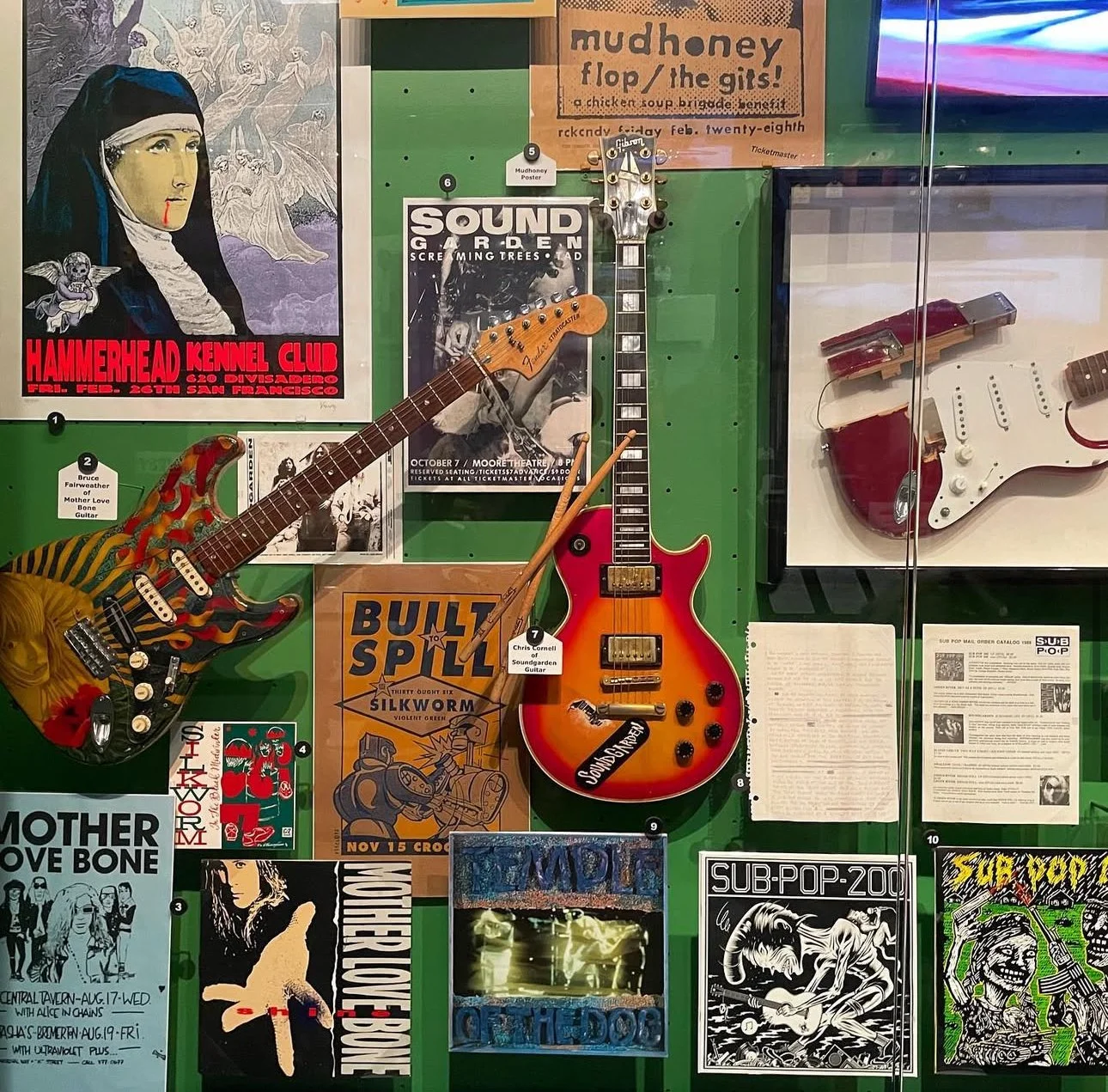 Rock Hall Sub Pop exhibit photographed by meI had the pleasure of going to the Rock and Roll Hall of Fame over spring break during my senior year of high school, which was one of the best experiences of my life. As a Seattle grunge scene nerd, who has read books and written papers about the ins and outs of the relationships, inspirations, and legacy of those involved in defining the Seattle sound, I was in heaven.